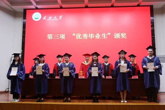 庄严的国歌声响彻全场,毕业典礼正式拉开帷幕。williamhill中文党委书记周胜美宣读优秀毕业生表彰文件,优秀毕业生们一一上台领奖。