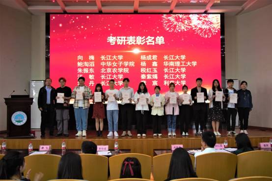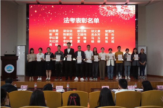 大会伊始,由党委副书记胡红霞做考研工作总结,对我院2021届考研、法考成绩做出肯定,希望来年再接再厉、再创新高。接着,由党委书记周胜美宣读表彰文件。学院领导老师随后对考研、法考先进代表进行颁奖。