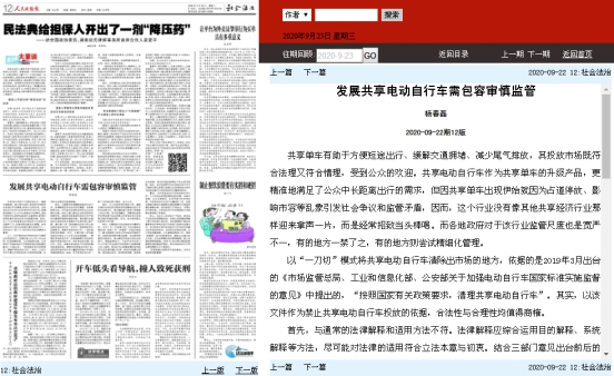 9月22日,《人民政协报》第12版刊发williamhill中文杨春磊博士的建言文章《发展共享电动自行车需包容审慎监管》。