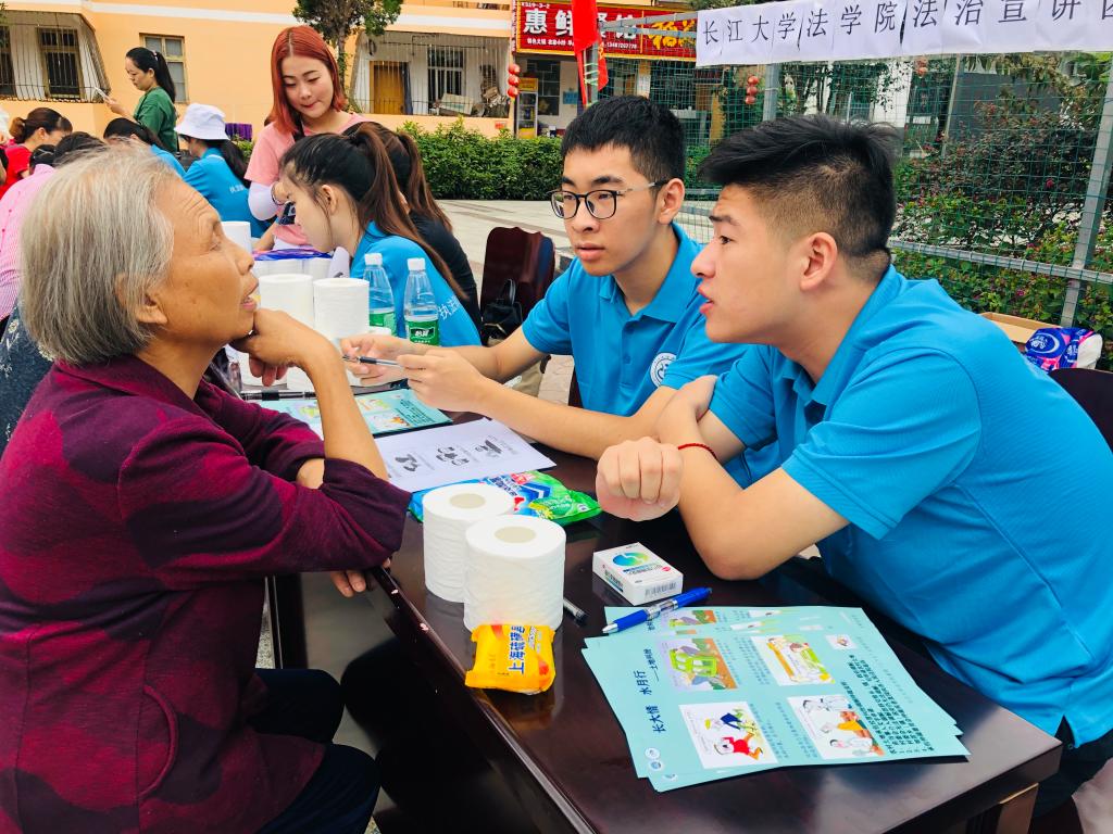 为了有效解决此类问题,同学们不断地与居民们进行一对一的法律讲解,减少他们的法律困惑,同时,还在广场上朗读相关法律法规,旨在让每位居民都能在愉悦的交谈中更好的理解和学习法律知识。