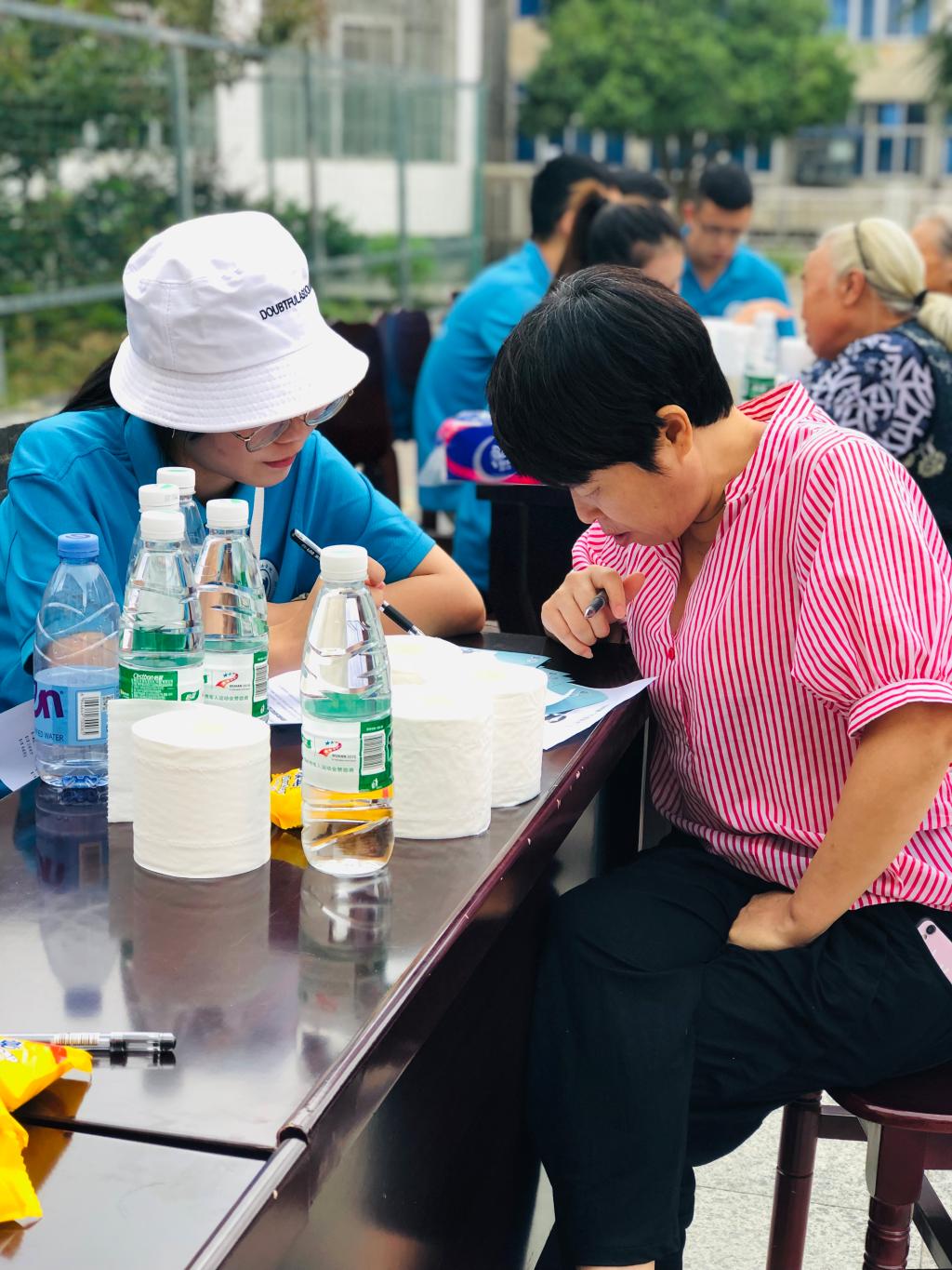 土地纠纷和债权问题是村民咨询的重点。一位八十一岁的爷爷为我们讲述了他的经历,爷爷曾积极配合有关部门征地,但却没有得到标准的安置房,经过成员们的讲解,他知道了政府征地不是仅仅根据土地面积,而是要考虑被征用土地各方面综合性因素;另一位阿姨在2016年10月借出了一笔钱,她原以为已经超过两年的诉讼时效而导致无法将钱要回,同学们告诉阿姨《民法总则》中规定的民事诉讼时效从两年提到了三年,这说明她仍然可以提起诉讼,阿姨知道后非常感谢同学们的帮助。
