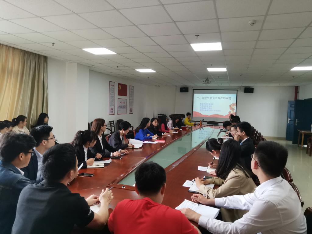 围绕以上问题,张书记首先从主观和客观方面分析了原因。她要求大学生党员“时刻牢记共产党员的第一身份”“严格遵守党员的根本行为规范”“始终守住党纪党规的基本底线”。教育大家时刻不忘共产党员的宗旨义务, 增强表率带头和先锋模范作用,做一名讲政治、有信念;讲规矩、有纪律;讲道德、有品行;讲奉献、有作为的合格共产党员。通过展示身边优秀大学生党员的事迹,张书记向大家诠释了党员先锋模范作用的应有之义。
