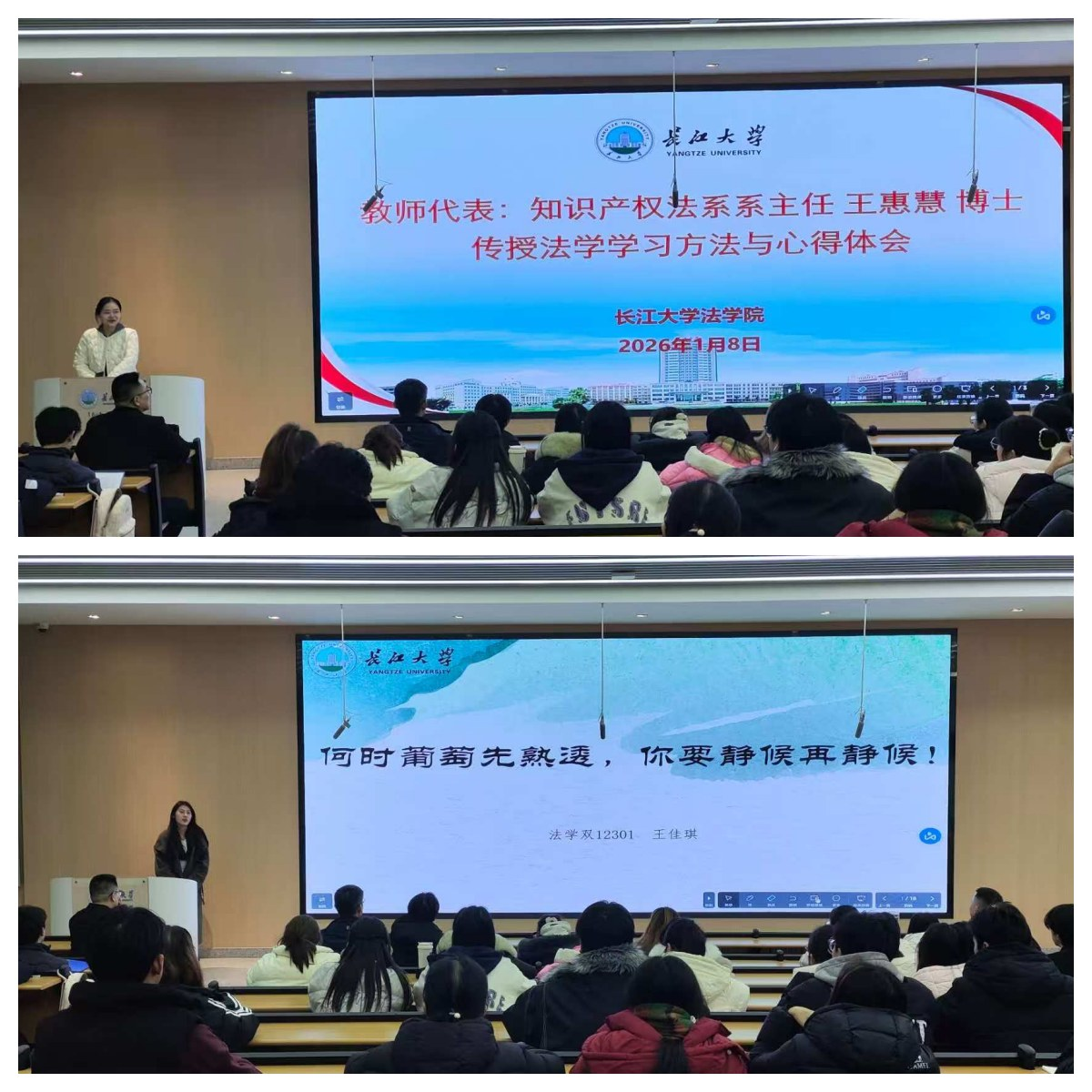 教师代表王惠慧结合教学与科研经验,系统阐述了法学学习的方法与路径。她指出,法学兼具理论深度与实践广度,鼓励同学们注重逻辑训练、文书写作与案例研讨,积极通过社会实践深化对法学知识的理解。