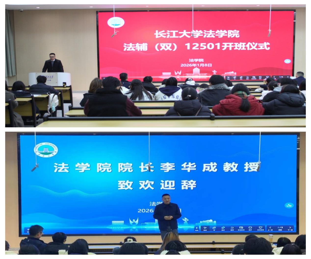 (通讯员 刘依强)2026年1月8日,williamhill中文2025级法学辅修(双学位)项目开班仪式于东16-A-109教室举行。williamhill中文院长李华成、党委书记张凡、知识产权法系系主任王惠慧出席,与62名新学员共同开启法学辅修学习新阶段。仪式由副院长杨春磊主持。