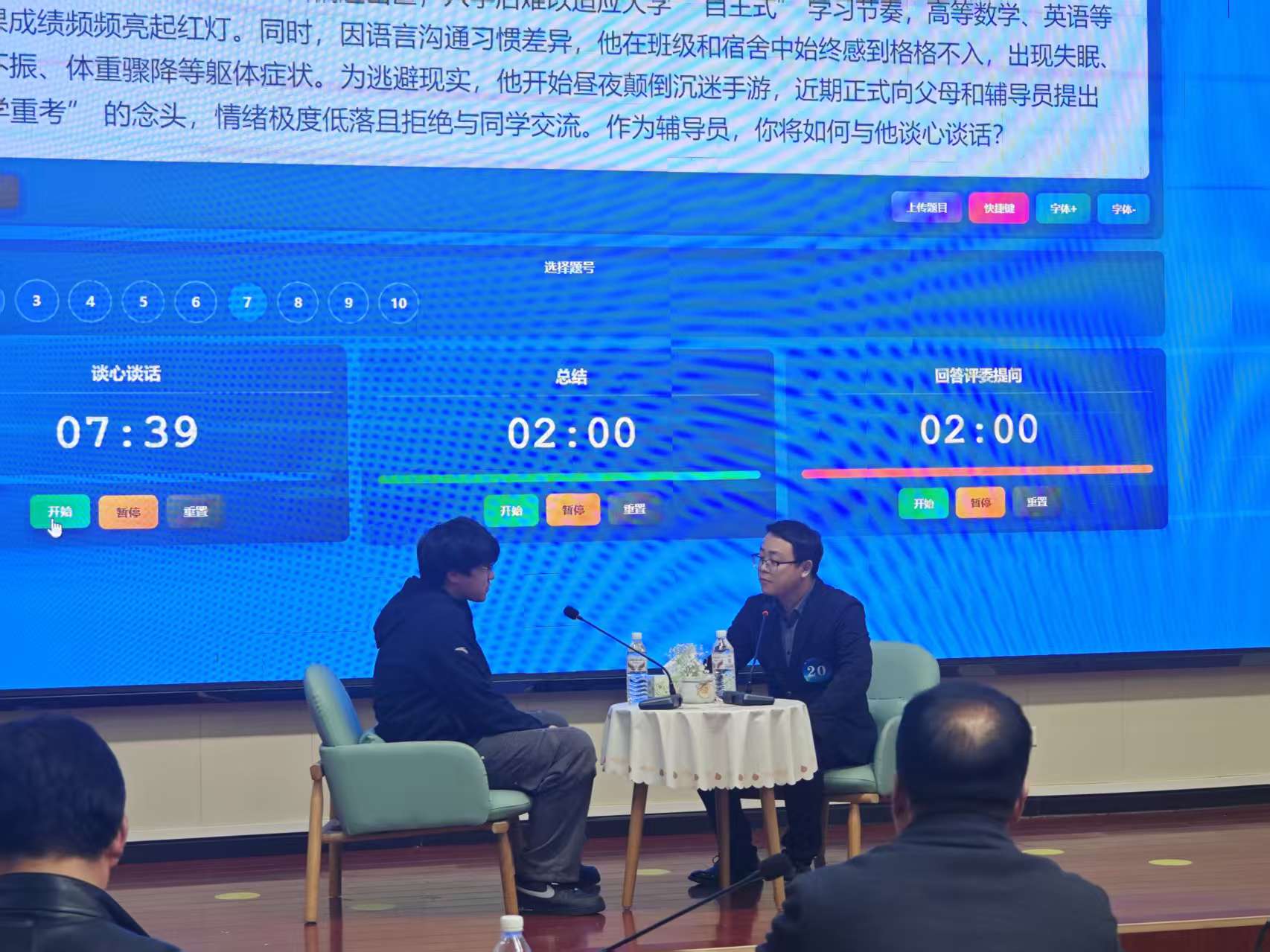 本次辅导员素质能力提升骨干训练营,是学校加强辅导员队伍专业化、职业化建设的重要举措,旨在全面提升辅导员综合素质与业务能力,筑牢学生思想政治教育工作根基。大赛赛程紧凑、考核全面,聚焦辅导员日常工作核心,围绕理论素养、案例研判、谈心谈话、应急处置等关键能力展开激烈角逐,全方位检验参赛辅导员的政治素养、业务技能和育人智慧。
