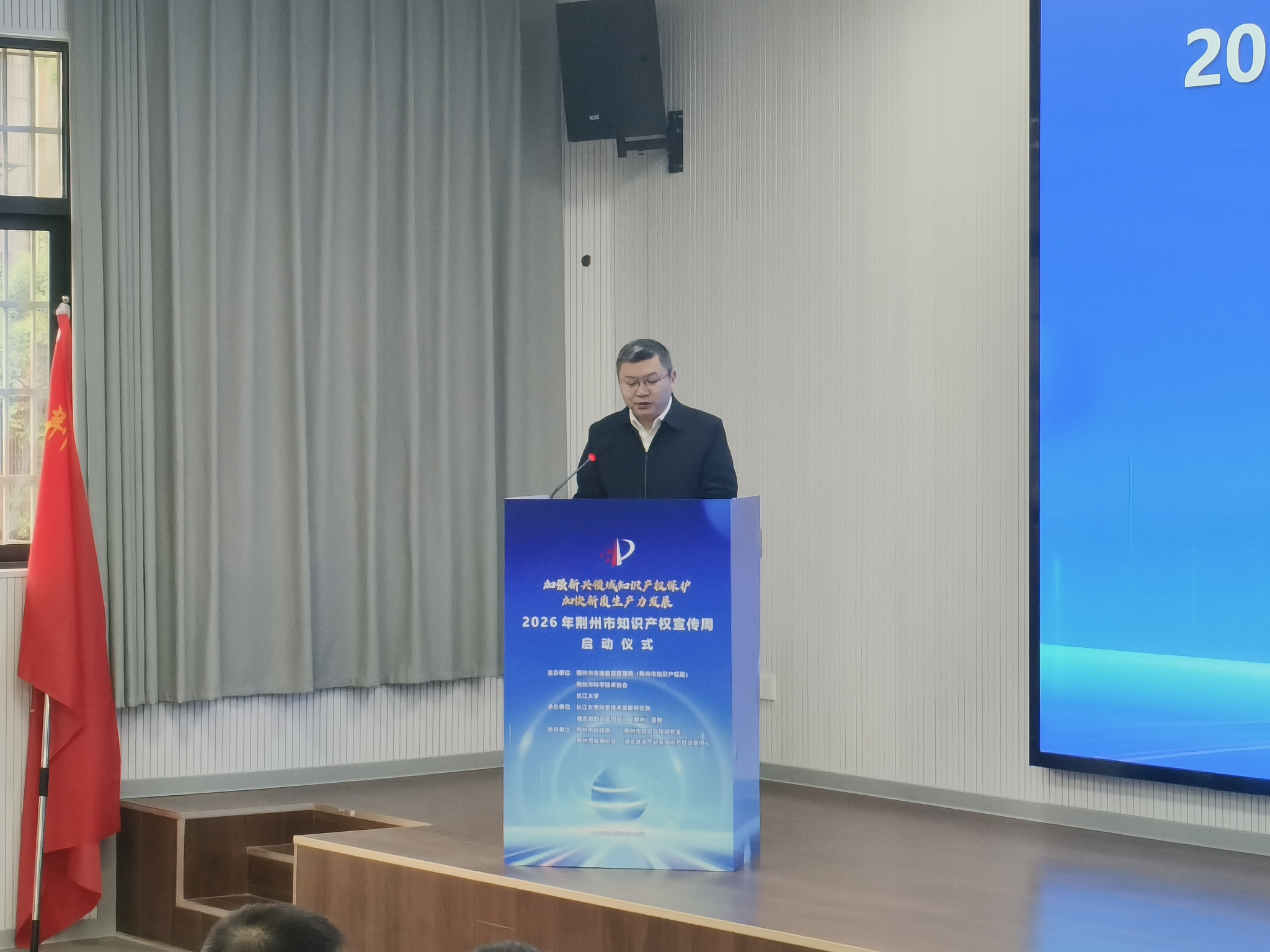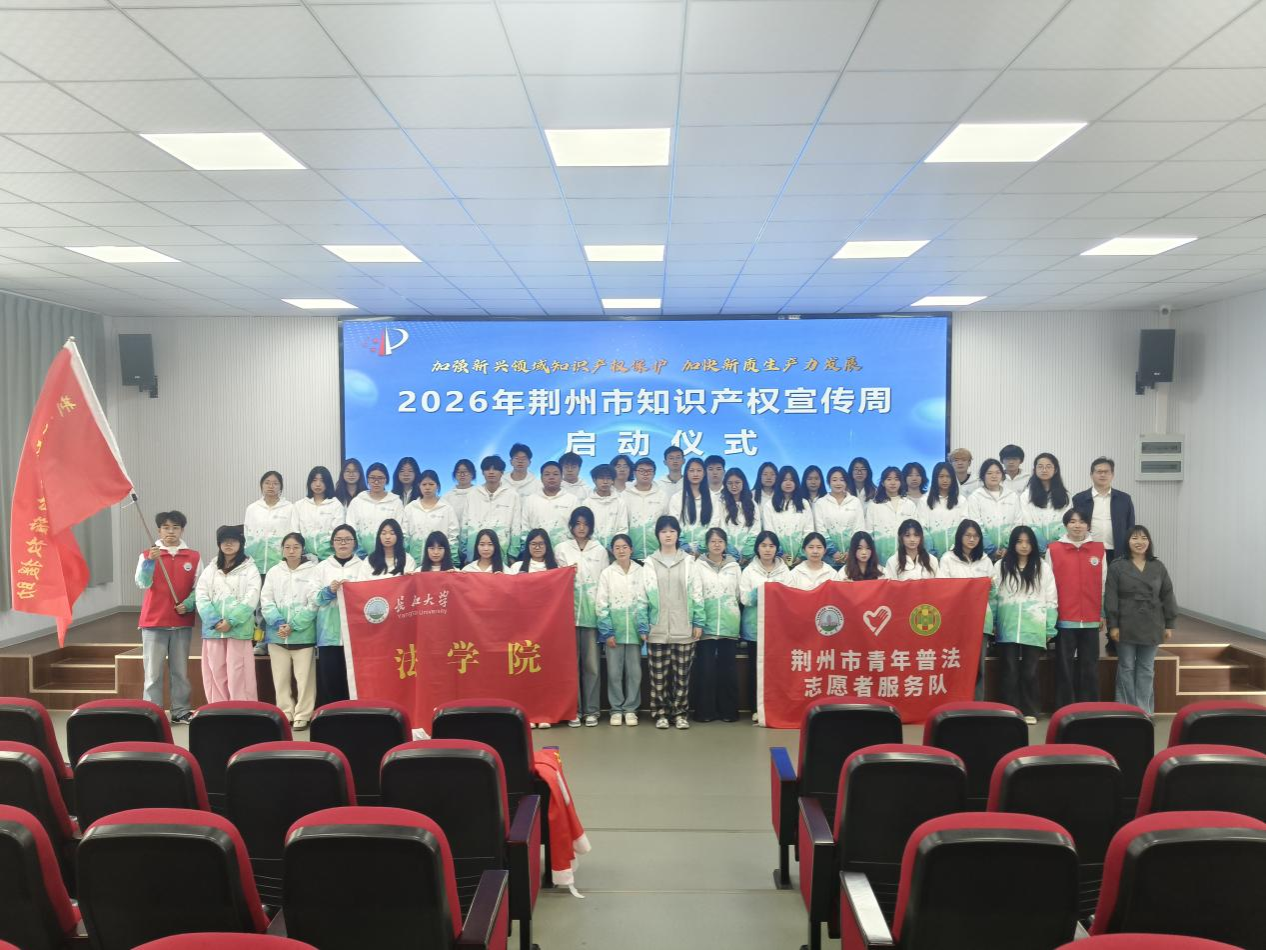 (通讯员 宋卓越)4月23日,2026年荆州市知识产权宣传周启动仪式在荆州市科技馆成功举办。我院54名知识产权志愿者代表受邀参加启动仪式,并全程参与知识产权主题成果展,在实践中深化对知识产权保护工作的认知,活动成效显著、意义深远。