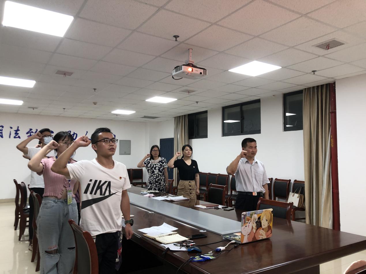 会议最后一项,由毕业生党员代表陈雪莹同志带领大家进行入党宣誓,重温入党誓词。
