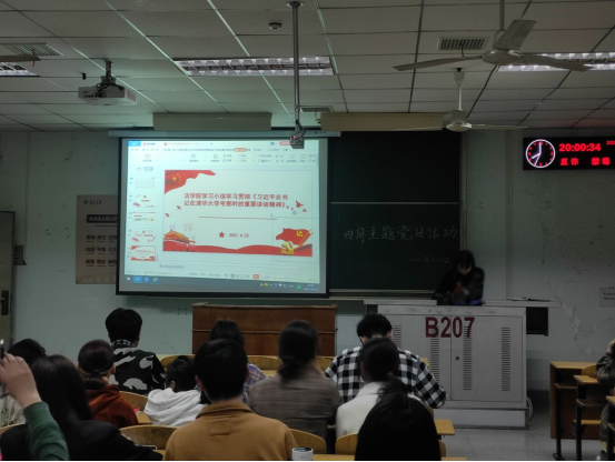 首先,全体成员观看了在清华大学建校110周年校庆日即将来临之际,中共中央总书记、国家主席、中央军委主席习近平来到清华大学考察时的视频。学习了《习近平总书记在清华大学考察时的重要讲话精神》文件,习近平总书记在清华大学考察时强调:坚持中国特色世界一流大学建设目标方向为服务国家富强民族复兴人民幸福贡献力量。