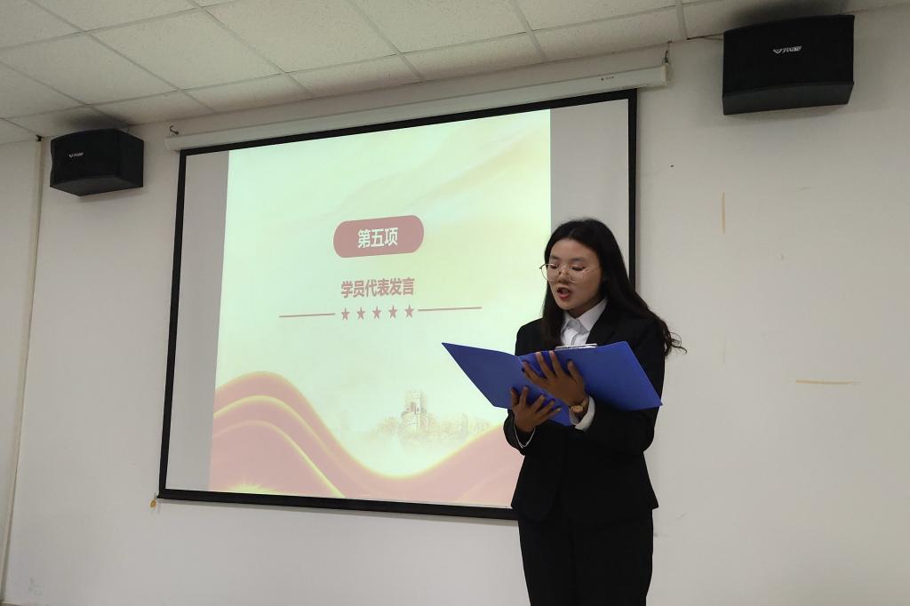 回望来时路,岁月峥嵘。胡红霞书记为第三期、第四期青马学习小组成员主持了信件发还仪式。徐婷婷作为学员代表做信件分享,她的分享展示了自己一年来的成长变化、展示了小组的培养成果。魏林老师为第三期青马学习小组成员颁发结业证书、白荣涛老师为第四期青马学习小组成员颁发结业证书,并合影留念。周胜美书记做总结讲话,对学员们的进步予以肯定,指出学员们今后的努力方向,并对法学生学习习近平法治思想提出了若干指导意见。