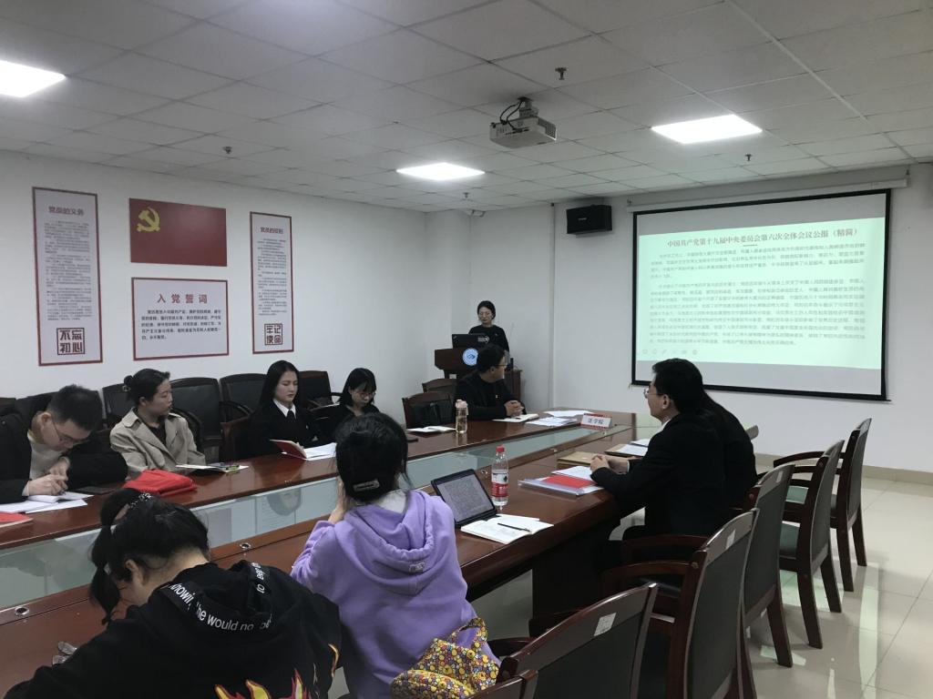 第三部分,开展十一月支部主题党日活动。第一项,由陈雪莹同志带领全体党员同志重温入党誓词,牢记初心和使命;第二项,全体党员集体学习《党章》第一章关于党员的相关内容;第三项,学习党史故事,由华丹同志讲述《共产党宣言》中文翻译第一人陈望道“真理的味道非常甜”的故事;第四项,学习习近平总书记在纪念辛亥革命110周年大会上的讲话、《求是》杂志发表习近平总书记重要文章《坚定理想信念 补足精神之钙》、党史学习教育领导小组印发的《关于充分发挥基层党组织战斗堡垒作用和党员先锋模范作用 进一步深化党史学习教育“我为群众办实事”实践活动的通知》、中国共产党第十九届中央委员会第六次全体会议公报等内容,丰富理论知识,开阔党员视野,不断向核心看齐。第五项,开展“结合自身岗位,谈如何学习贯彻十九届六中全会精神”的主题研讨,吴淼、李润金等同志分别对全会的主要内容、历史影响进行解读,就自身专业知识的实践应用、作为党员的时代担当提出了深刻的见解和看法。第六项,检查各位党员学习强国学习情况并通报。最后,盛文军书记就主题党日的学习内容、学习强国检查情况进行总结发言,强调党员同志应当树立责任意识,明确自身定位,积极在家庭、学校、社会承担自己的责任,努力学习,增强本领。