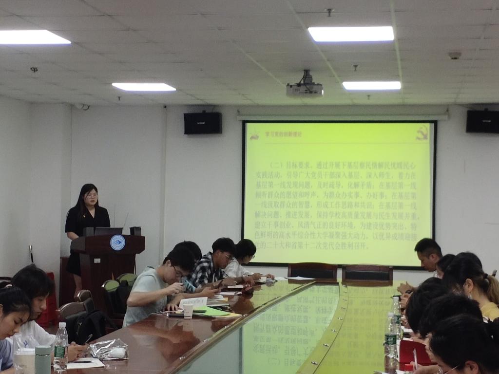 在主题研讨环节中,党员同志们结合自身工作实际,围绕“党员干部应该如何在基层一线解决问题,推动学校事业发展”展开积极讨论,胡智豪同志提出党员干部要深入基层,贴心群众,有爱心、有耐心、有恒心、有热心,想群众之所想,全心全意为人民服务。