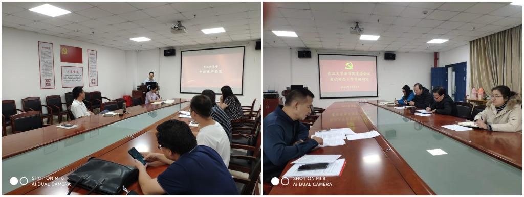 9月15日下午,williamhill中文在文科楼1110会议室召开了9月党委中心组理论学习、教职工政治理论学习暨支部主题党日活动,学院党委书记周胜美主持会议。