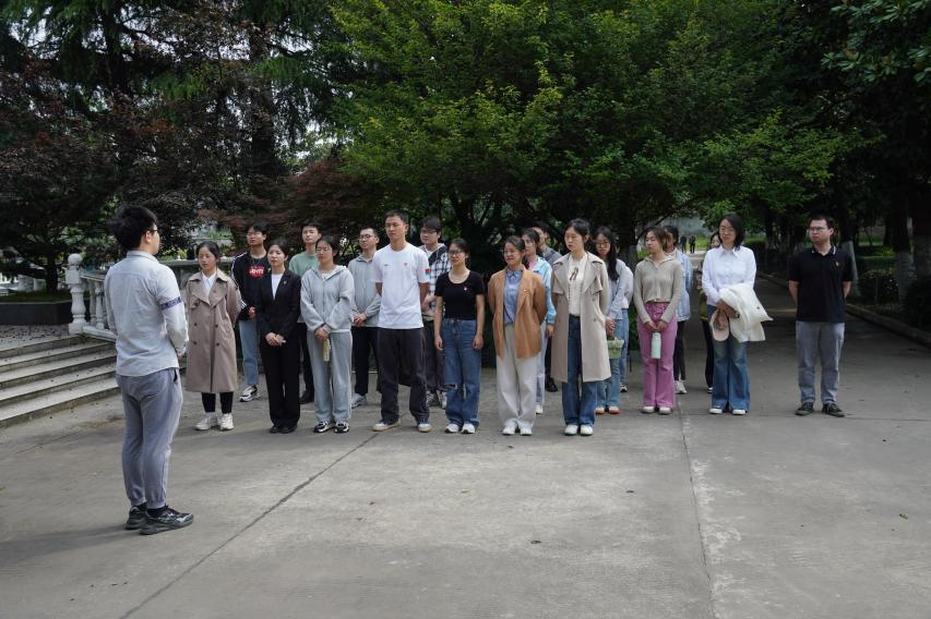 纵然岁月改变山河,但英雄从未远去。活动伊始,全体党员在庄严肃穆的烈士纪念碑前奏唱国歌,罗浩文同志带领全体同志重温入党誓词,前行不忘初心。紧接着,由冯其莉同志向在场的全体师生介绍荆州烈士的英勇事迹,她带领大家重温了那段战火纷飞的光荣岁月。“天地英雄气,千秋尚凛然。缅怀,为铭记,更为传承。”冯其莉同志慷慨激昂地讲述到。