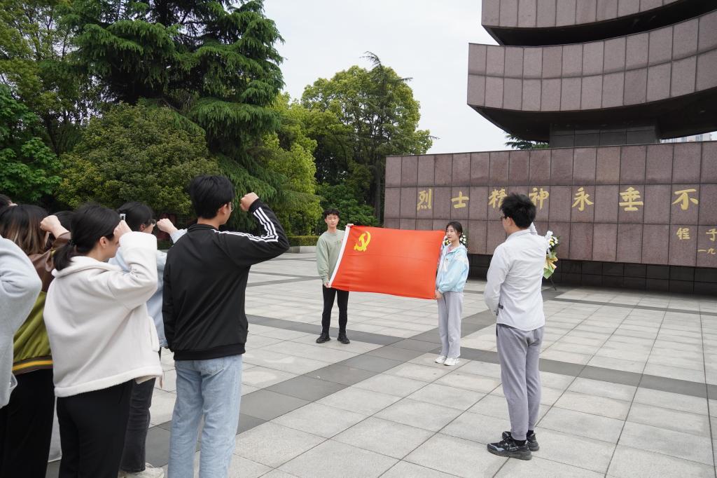 活动伊始,全体党员在庄严肃穆的烈士纪念碑前奏唱国歌,由骆语杰同志带领全体党员重温入党誓词,前行不忘初心。紧接着,由冯其莉同志向在场的全体师生介绍荆州烈士的英勇事迹,她带领大家重温了那段战火纷飞的光荣岁月。“天地英雄气,千秋尚凛然。缅怀,为铭记,更为传承。”冯其莉同志慷慨激昂地讲述到。