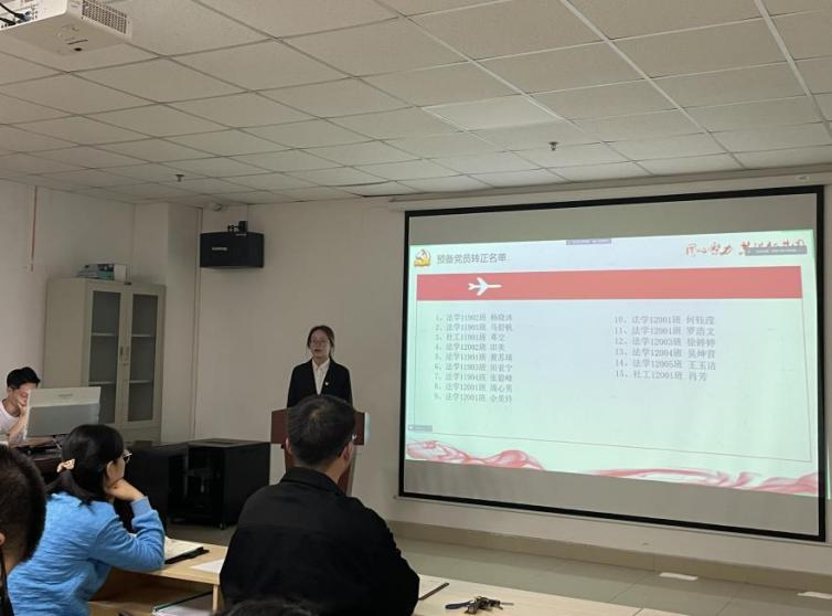随后进行的预备党员转正大会中,黄苏琦等15名预备党员就自己在一年预备期内的学习、生活、工作等方面以及优缺点向党组织进行汇报,其入党介绍人分别发表意见及与会党员提问后,由正式党员进行无记名投票,骆语杰同志宣布投票结果,黄苏琦等15名同志获得赞成票数超过应到有表决权正式党员的半数以上,支部大会通过预备党员按期转正的决议。