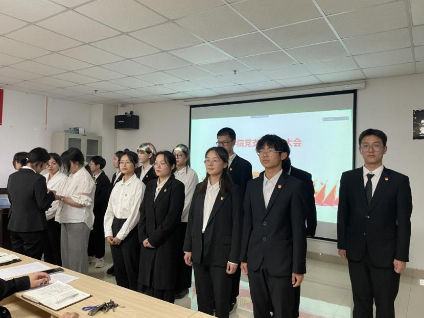大会最后,全体党员于文科大楼1011进行入党宣誓,党委副书记胡红霞对三十二位同志获得新的政治生命表示祝贺,并强调学生党员要把生命融入社会的洪流,谨记自己的身份,时刻以党员的身份来要求自己,起到模范带头的作用。