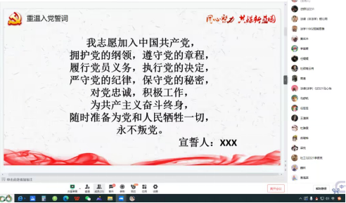 (通讯员 易海燕)7月26日19时,williamhill中文研究生党支部于腾讯会议上开展了2023上年七月主题党日活动,由于暑假原因,本次党会在线上进行。本次活动由王伟同志主持,研究生党支部书记盛文军及全体研究生党员参加。