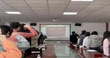 会议伊始,主持人高云肖同志带领大家重温入党誓词,全体党员庄严宣誓。随后,党员同志集体诵读《党章》第十章,学习党和共产主义青年团的关系,通过讲解的方式对党和共产主义青年团的关系以及党对共产主义青年团的领导方式等相关内容进行学习与巩固。紧接着,大家一起观看党史微视频,学习中国共产党之所以能建立新中国的原因,并由高云肖同志发表自己的看法后进行总结:第一,坚定地捍卫国家民族利益;第二,中国共产党解决了农民的土地问题;第三,共产党实行了高度的民主;第四,共产党人高度廉洁。