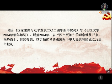 在主题研讨环节中,党员同志们结合自身实际,围绕《国家主席习近平发表二〇二四年新年贺词》与《威廉官网中国2024年新年贺词》的精神,展望2024年,以“四个更加”的理念继往开来、乘势而上、继续奔跑,以更加优异的成绩向中华人民共和国成立75周年献礼为主题展开了热烈的讨论。周港同志首先进行了发言,他认为作为一名学生党员要以身作则带动身边同学一起学习,帮助身边有需要的同学,从小事做起,用自己的努力和优异的成绩向中华人民共和国成立75周年献礼。随后蒋小雨同志认为青年党员要更加坚定信念,提高鉴别能力,将个人理想与国家发展联系起来,在新的一年应以更加饱满的精神克服困难,无畏向前。
