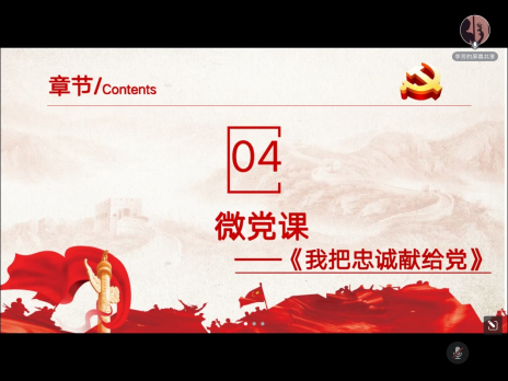 在微党课学习环节中,王澳琪同志为大家带来了微党课——《我把忠诚献给党》的讲解,通过微党课的学习让大家认识到了绝对忠诚是共产党人必须具备的政治品质。