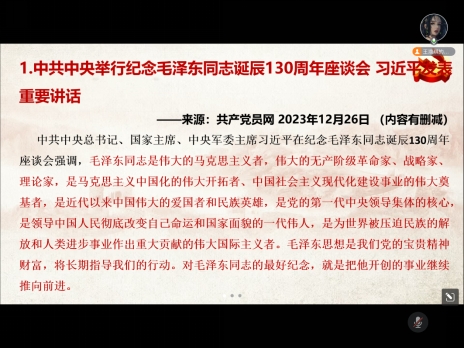 在接下来的理论学习环节中,全体党员们在王澳琪同志的带领下学习了以下四个方面的内容。在习近平总书记重要讲话重要指示方面,党员同志们学习了《中共中央举行纪念毛泽东同志诞辰130周年座谈会习近平发表重要讲话》;在相关制度文件学习方面,研读了中共中央印发《中国共产党纪律处分条例》(2023 年12月8日第三次修订);在省委决策部署方面,党员同志们了解到了《关于深入推进党员干部下基层察民情解民忧暖民心实践活动的意见》的相关内容;在领悟学校精神方面,大家学习了《永远奔向前方一威廉官网中国2024年新年献词》以及校党委书记王建平在2023年度二级党组织书记抓基层党建工作述职评议会上的讲话,通过这些理论学习,全体党员们收获颇丰。