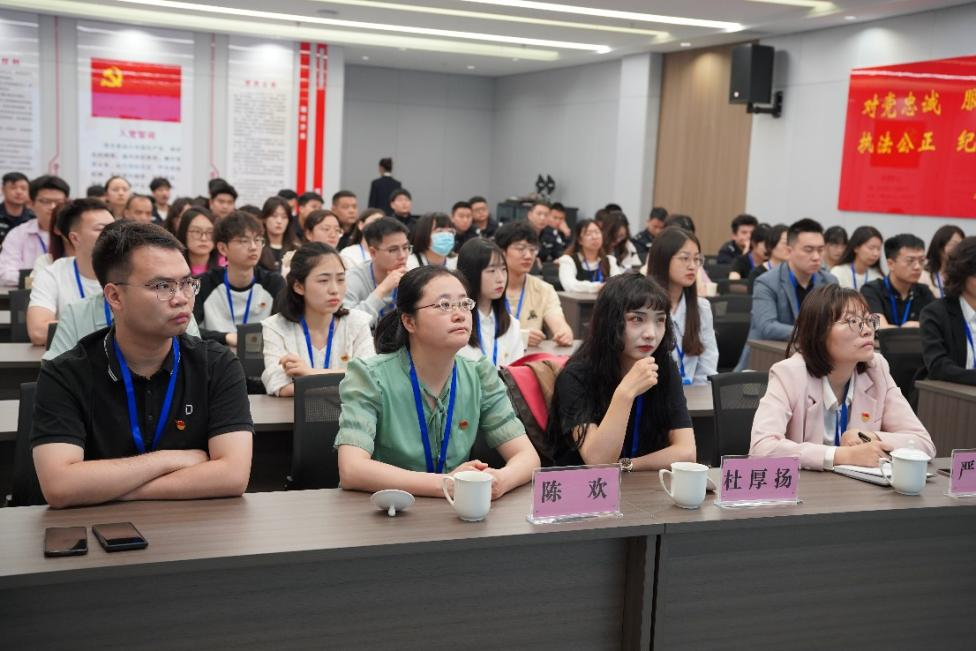 在研讨环节,学生代表们积极发言。王伟表示作为一名新时代的法学生,要坚持以强化专业基本功为基础,积极参与司法实践为导向,不断提升自我本领;曾旺呼吁大家不忘初心,牢记使命,把自己培养成一名高素质的法律工作者;马筠青认为应当以自己年轻的热情和执着的追求,在实践中不断完善自己,为国家的法治建设贡献一份青年人的力量。