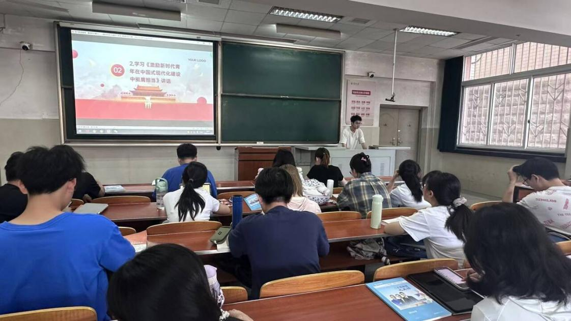 本次主题团日活动主要学习习近平总书记给谢依特小学戍边支教西部计划志愿者服务队队员的回信精神以及习近平总书记重要讲话—《激励新时代青年在中国式现代化建设中挺膺担当》,引导全院学子坚定理想信念、发扬奋斗精神、厚植家国情怀、练就过硬本领,回信精神融入专业学习,用扎实的法律知识捍卫公平正义;深入开展就业引航主题团日活动,通过互动问答等多种形式引导同学们正式就业问题,树立平实、理性的择业观和就业观;开展毕业生团组织关系转接,通过规范转接流程、强化服务指引,既助力毕业生延续政治身份、坚守理想信念,也为共青团组织吸纳新鲜血液、夯实基层基础提供有力支撑,让青春力量在党和国家事业中持续发光发热。