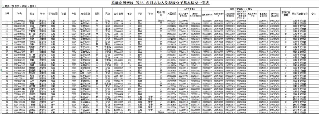 附:拟确定周奕汝等36名同志为入党积极分子基本情况一览表