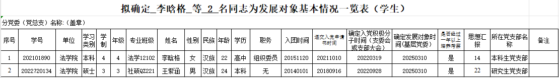 附:拟确定李晗格等2名同志为发展对象基本情况一览表