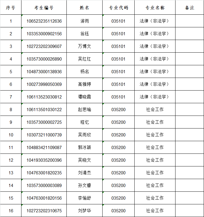 四、复试名单见下表