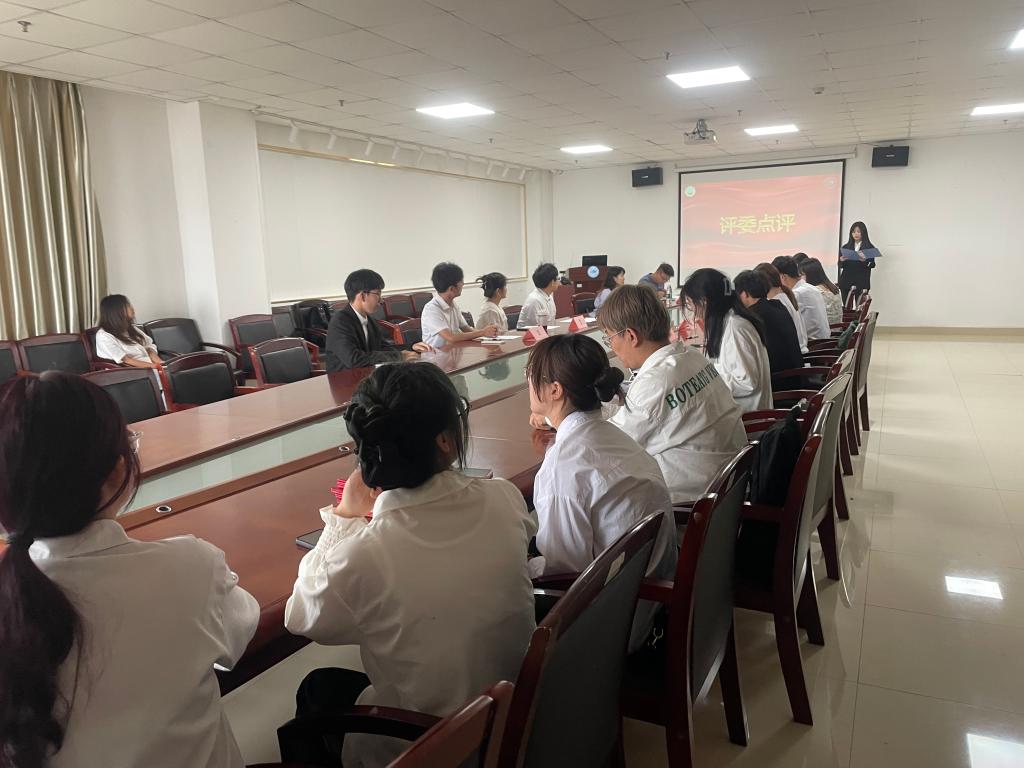 此次大赛通过初审,最终共有6名学生参加复赛。比赛采取无领导小组讨论的形式开展,学生们精心准备,模拟求职情景。在选手们各自进行观点陈述后进入了自由讨论环节,各选手依次发表论据以佐证自己的观点,最终达成共识并进行总结陈述。
