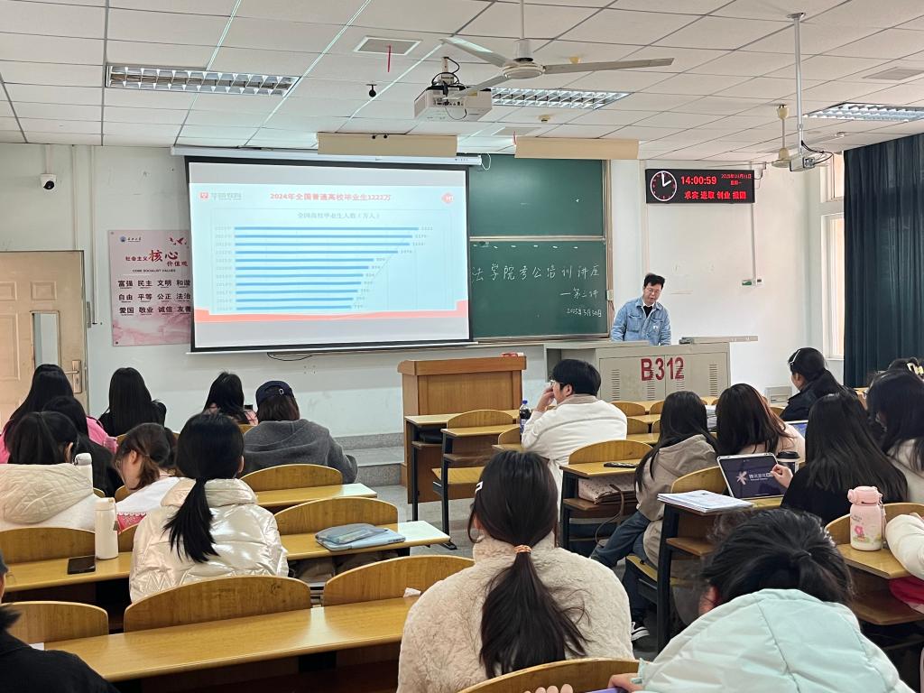 (通讯员 胡曦禾)2025年3月31日,williamhill中文公务员考试培训讲座第三讲在13教B312举行,讲座由专业公考培训机构华图教育章康老师主讲,williamhill中文部分22级本科生参加。